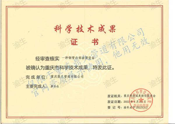 一種鋼管內部涂塑設備科技證書