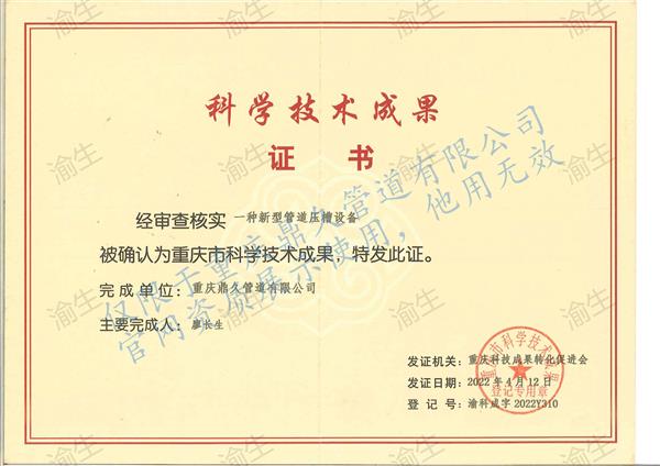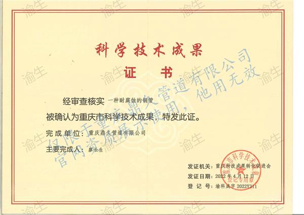 一種耐腐蝕的管道科技證書